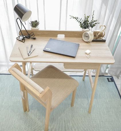 COMPACT Home Working Space: A space to create homework for the new generation. small size, many functions Suitable for placing in a condo room with limited space, real wood legs, natural wood color, with 1 set of drawers, there is a place for putting trailer plugs, the front of the table supports a weight of not more than 15 kg, a shelf/drawer can support a weight of not more than 3 kg